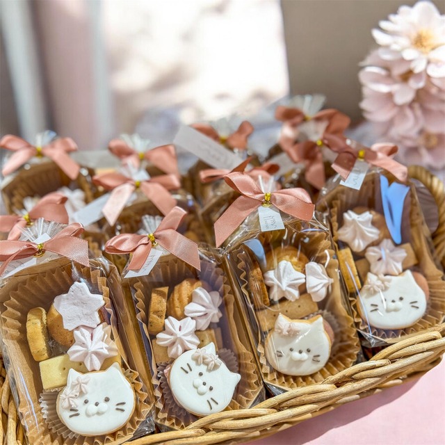 ※ご注文前に必ず「ご注文前に必ずご一読ください」をご確認の上でご注文をお願いいたします。 https://atelierbloom.base.shop/items/36071266 sweets atelier bloom スイーツアトリエブルームの商品をご覧頂きありがとうございます。 春を感じるさくらのクッキーアソートが登場! 主役は、愛らしい桜をあしらった猫のアイシングクッキー。 いちご味クッキーの風味が織り成す、華やかな一箱です。 見た目も味わいも楽しめる焼き菓子をぎゅっと詰め込んでいます。 ひとつひとつ丁寧に焼き上げたクッキーは、特別な方への感謝の気持ちを伝える、心温まるギフトにもぴったりです。 自分へのご褒美としてもおすすめですよ。 【おすすめの用途】 ・春のお礼や贈り物に ・ちょっとした手土産として ・自分へのご褒美に 内容: ・アイシングクッキー(猫) ・いちごメレンゲ ・いちごのスノーボール ・ヴィクトリア(いちごジャム) ・アールグレイ ・ショートブレッド 【賞味期限】 製造日から45日 【商品について】 クッキーは手作業で作られており、色味が写真と微妙に異なる場合がございます。ご了承ください。 【缶の大きさ】 37mm×84mm×H43mm 【原材料】 小麦粉(国内製造)、無塩バター、鶏卵、てんさい糖、粉糖、ストロベリーパウダー、米粉、ココア、チョコチップ、いちごジャム、アールグレイ、コーンスターチ、バニラエクストラクト、塩、着色料(紅麹、クチナシ、竹炭パウダー、ココア) 【発送日について】 発送日は当店(静岡県)から郵便局に発送を依頼する日です。到着日は翌日以降になります。 【破損、事故について】 商品の梱包・発送には万全を期しておりますが、クッキーは繊細なため、発送後の事故・取扱不注意等による破損に関しては責任を負いかねます。予めご了承ください。 【保管場所】 高温多湿を避け、常温で保管してください。 【キャンセルについて】 全て受注生産のため製造開始後のキャンセルはできかねます。ご了承ください。