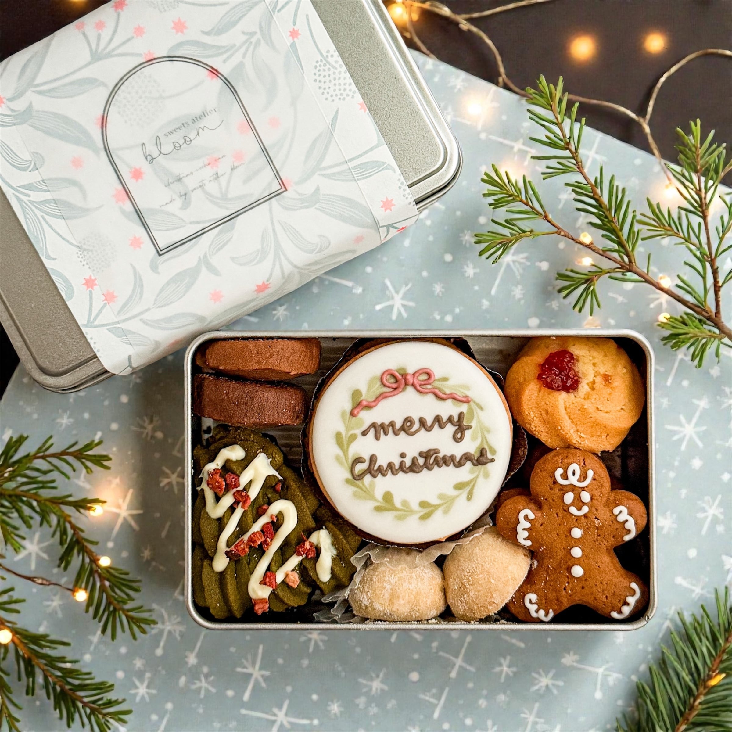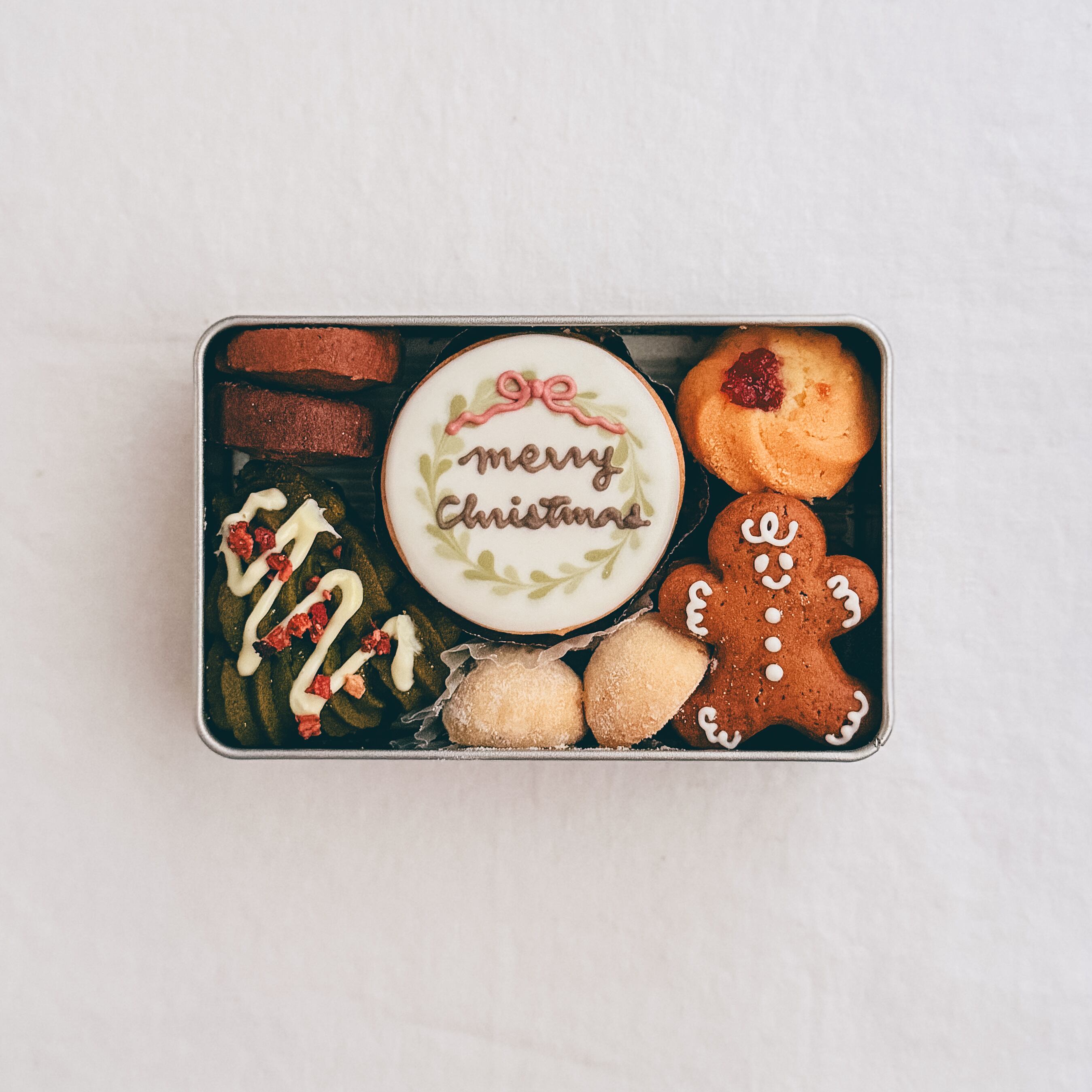 クリスマスにぴったりな、クリスマスのメッセージプレートとジンジャーマンのアイシングクッキーが豪華に詰まったクリスマスクッキー缶が登場!