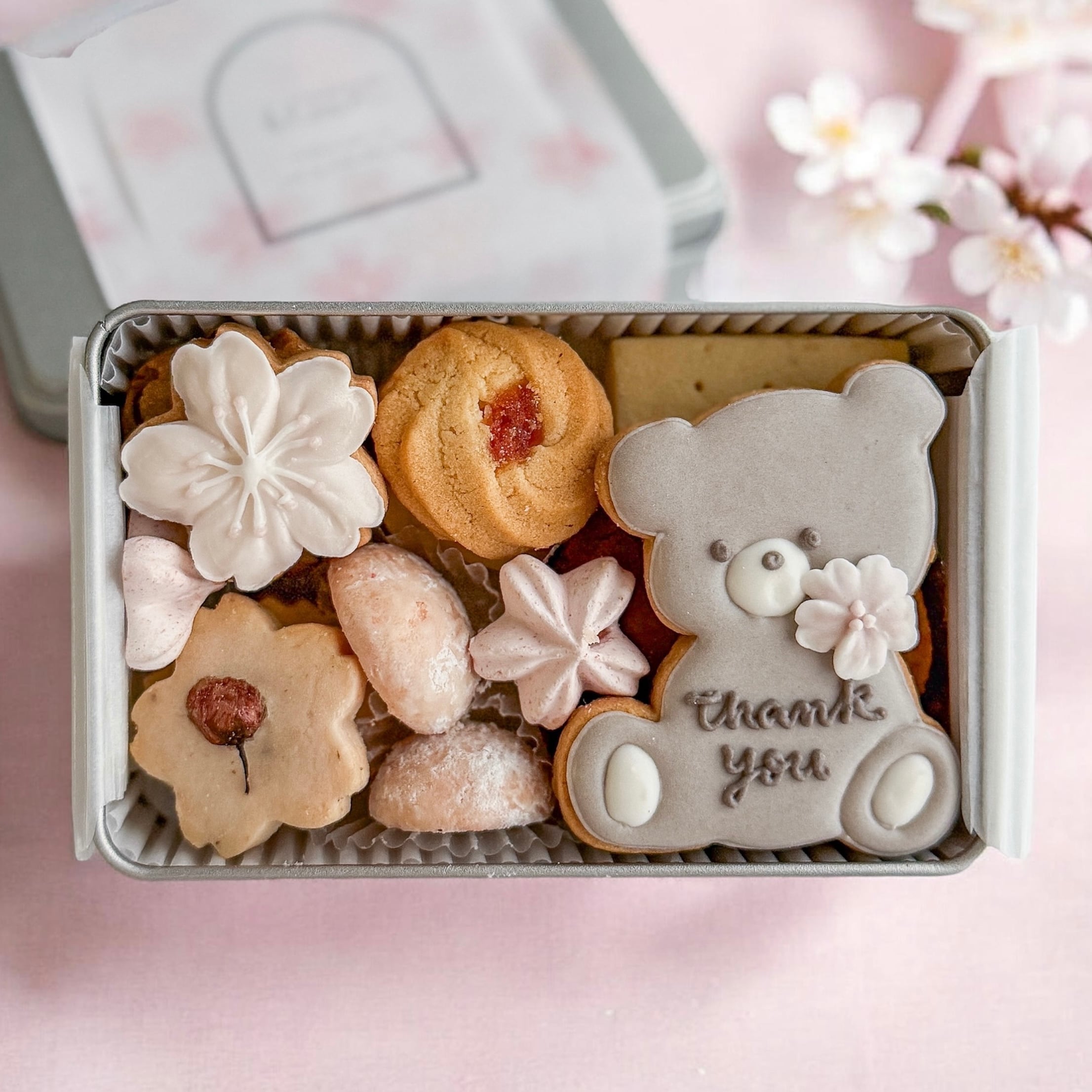 主役は、愛らしい桜をあしらったくまのアイシングクッキー。